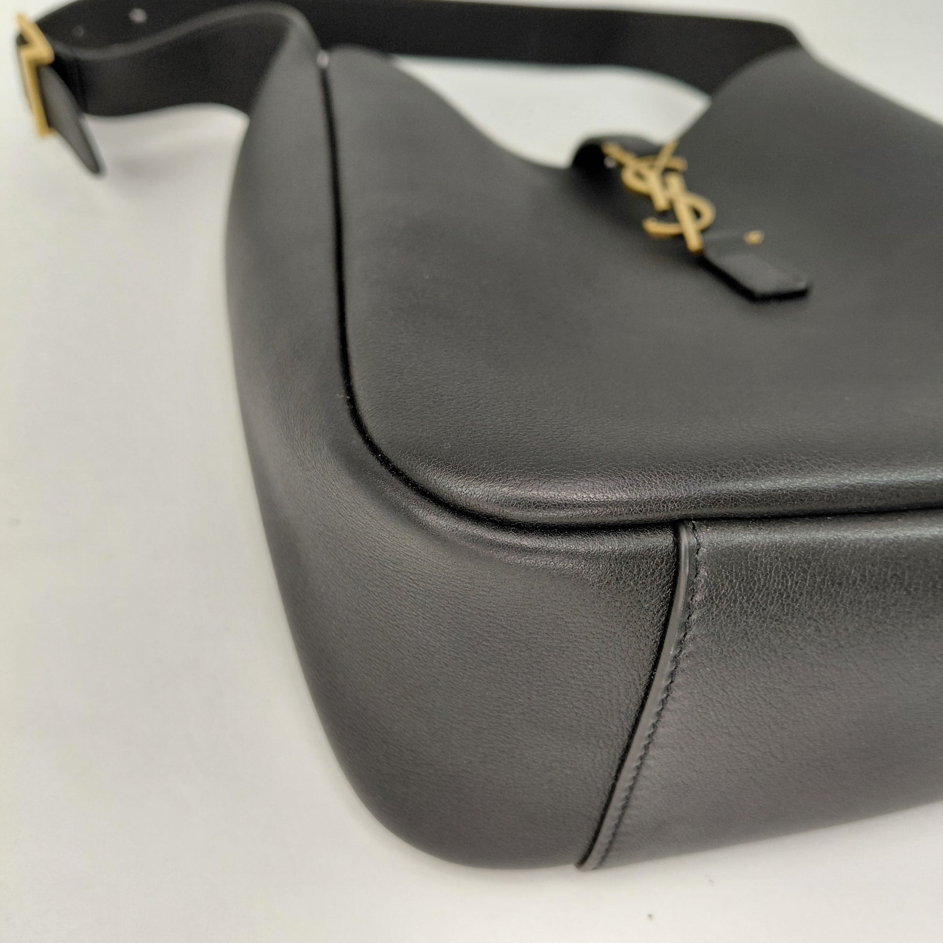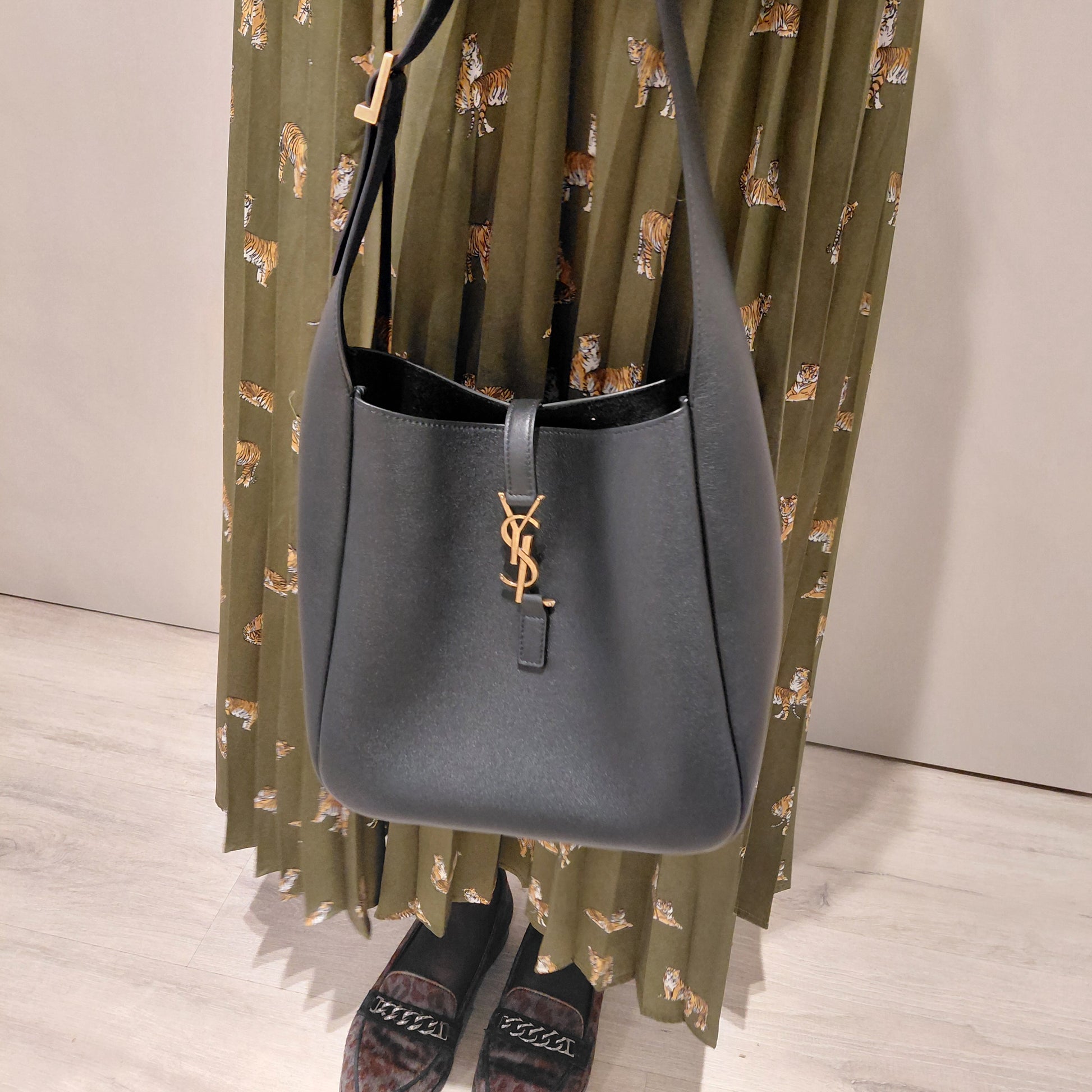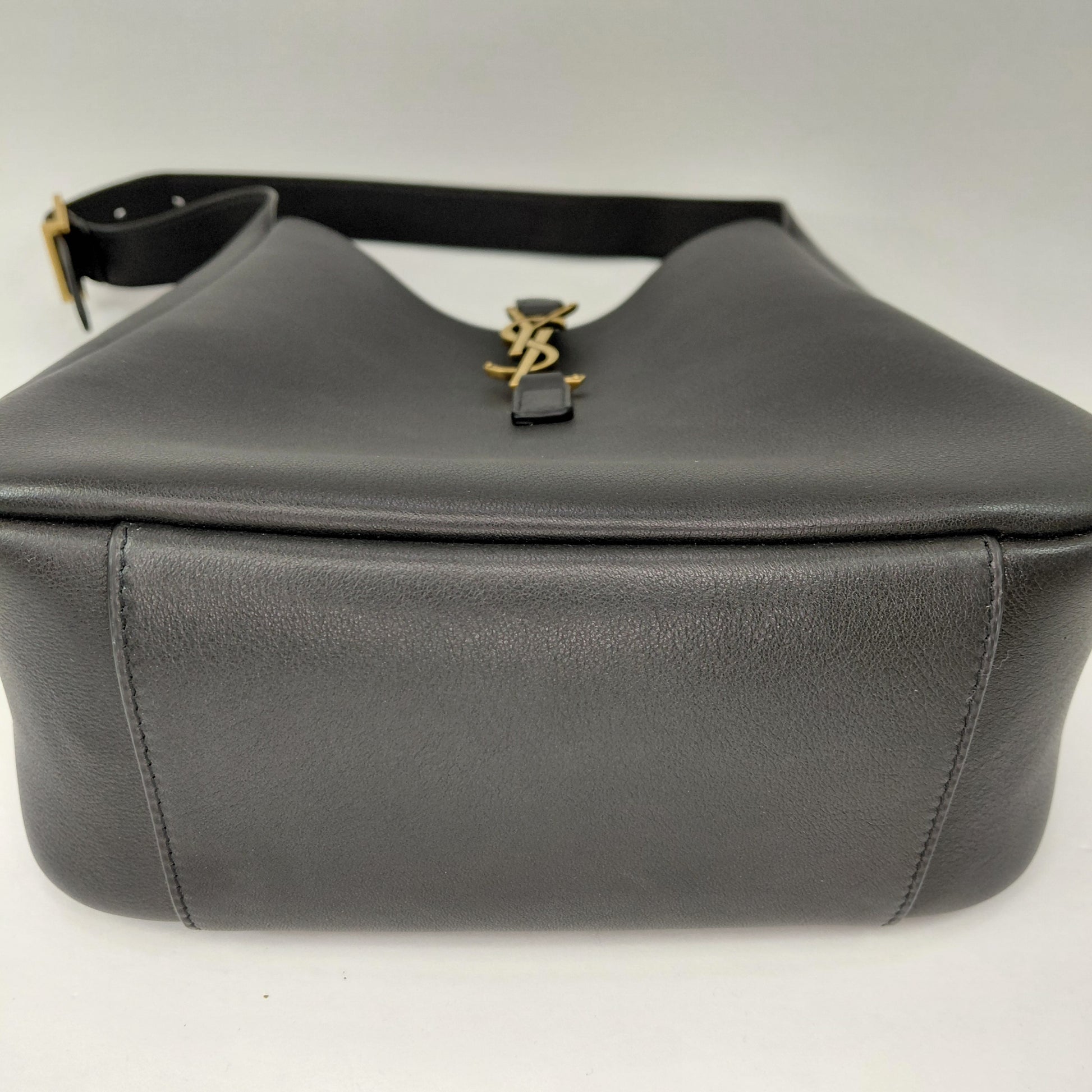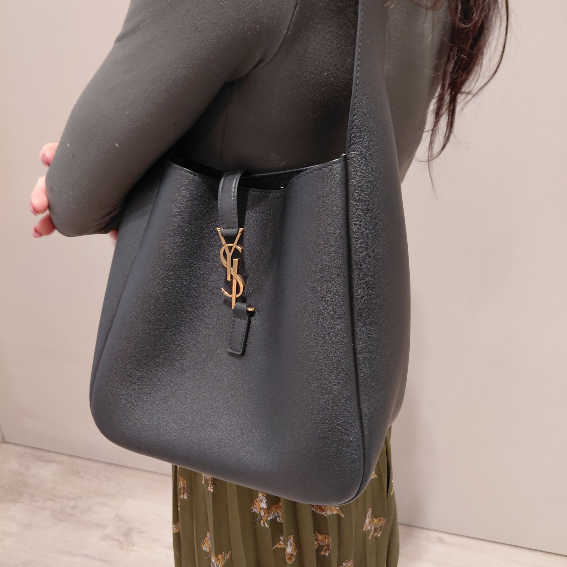 L’iconica 5 à 7 declinata in versione morbida. La borsa è realizzata in pelle leggermente martellata e foderata in suède tono su tono. Spaziosa, è dotata di una patta in pelle ornata con Cassandre e di una tasca interna con zip. La cinghia è regolabile per una portabilità su misura.